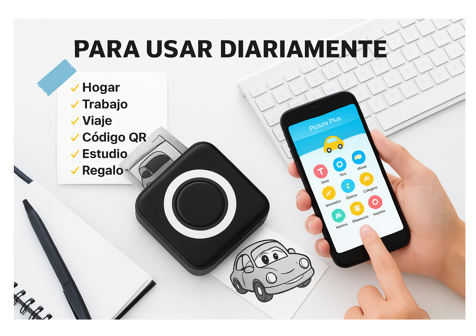 ✅ Multifuncional – Perfecta para imprimir notas, listas, códigos QR, recordatorios, fotos en blanco y negro, etiquetas y mucho más.